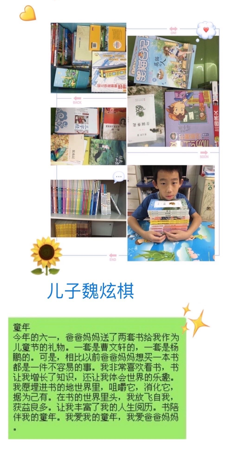 今年的六·一讓人難忘,在我們祖國經(jīng)歷了重大疫情重創(chuàng)后,我們還能擁有如此豐富多彩的六·一活動,收到超多的美食,還有玩具,每個人都共同參與節(jié)目表演,老師和同學(xué)們在一起歡歌笑語,收獲終生難忘的記憶。感謝偉大的逆行者們!感恩學(xué)校老師們的精心策劃安排,讓我們過了一個這么有特色的自主六·一兒童節(jié)!