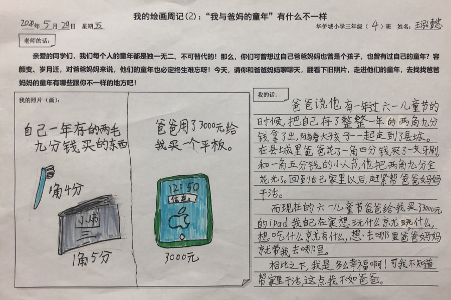 ▲媽媽說:“那會兒只有過六一兒童節(jié),才可以吃到大白兔奶糖。甜蜜蜜的味道,渴望了許久,吃了糖,糖紙都舍不得扔,還悄悄珍藏起來。”媽媽還說:“那時,沒有漂亮的公主裙,只有純白的棉布裙,但還是特別的開心!”雖然我和媽媽在六一得到的禮物不同,但過節(jié)的心情都是激動又難忘!