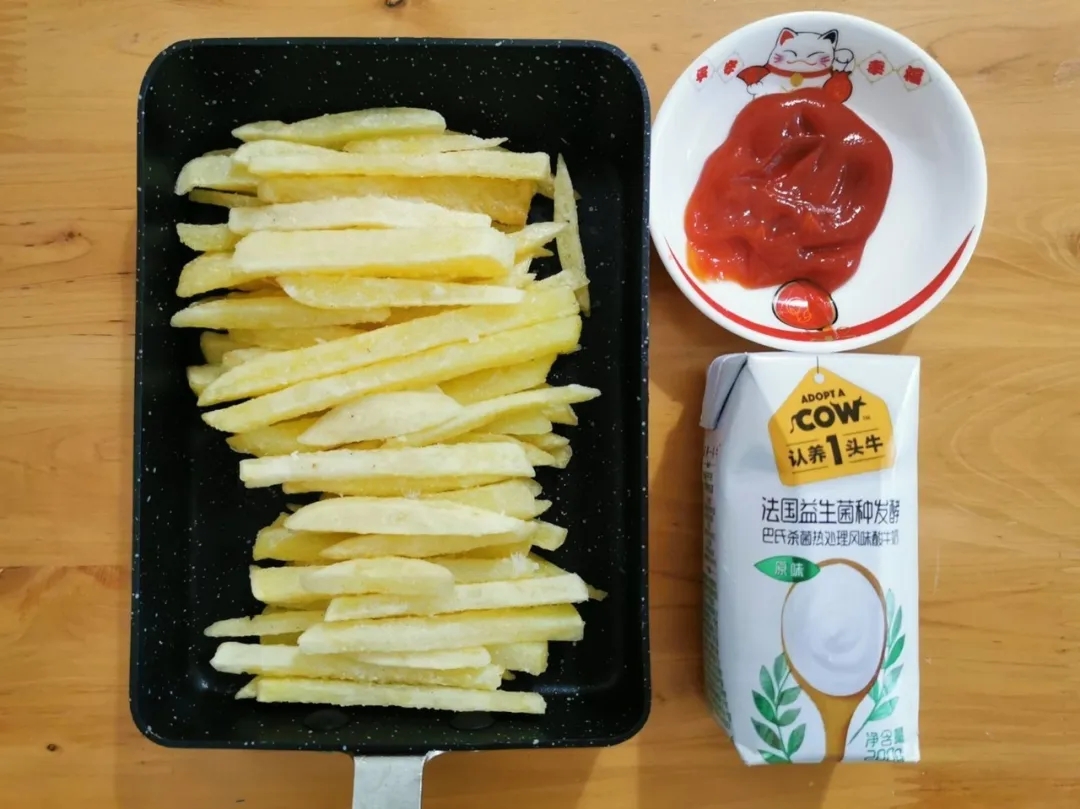 ▲小康最愛的零食是媽媽親自炸的薯條配番茄醬。