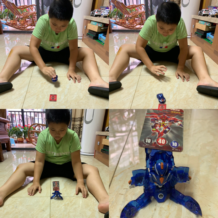 ▲這是爸爸小時候愛玩的“斗腳”游戲。爸爸現(xiàn)在也教我玩,并告訴我遇到挫折時要跟“斗腳”游戲一樣奮勇而戰(zhàn),永不放棄迎難而上。