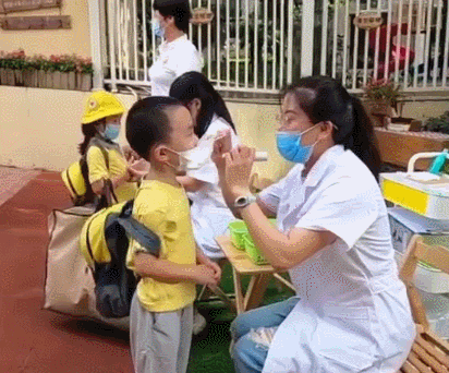 老師依次對孩子進(jìn)行體溫檢測