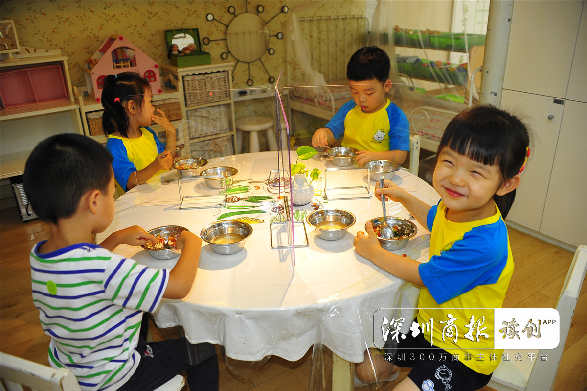 梅林一村幼兒園,小朋友們開(kāi)始吃飯啦