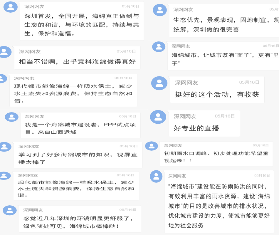 見圳客戶端·深圳新聞網(wǎng)2020年6月5日(見圳客戶端、深圳新聞網(wǎng)記者 葉梅)5月16日,深圳市海綿城市建設(shè)工作領(lǐng)導(dǎo)小組辦公室聯(lián)合深圳新聞網(wǎng),在深網(wǎng)直播平臺對《深圳市海綿城市建設(shè)2019年度優(yōu)秀經(jīng)驗(yàn)分享會暨2020年度海綿城市獎勵申報(bào)啟動儀式》進(jìn)行了線上全程直播。為答謝深圳網(wǎng)友對直播的全程關(guān)注,我們在后臺挑選出100位網(wǎng)友的精彩留言,為大家送上U盤一個,請?jiān)诮貓D中留言的網(wǎng)友于一周內(nèi)(6月12日前)自主撥打聯(lián)系人電話認(rèn)領(lǐng)禮品。