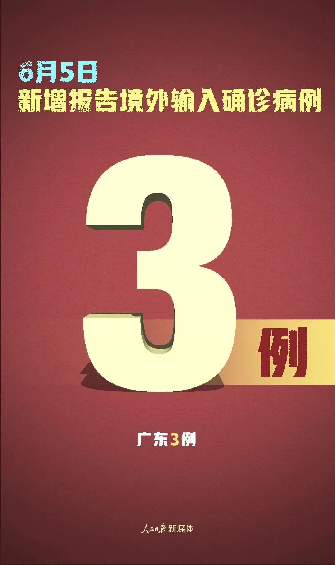6月5日0-24時,31個省(自治區(qū)、直轄市)和新疆生產(chǎn)建設(shè)兵團報告新增確診病例3例,均為境外輸入病例(廣東3例);無新增死亡病例;新增疑似病例1例,為境外輸入病例(上海1例)。