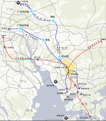 提升國(guó)際交往便利度。依托中深惠城際、深莞城際和城市軌道,加強(qiáng)與深圳寶安國(guó)際機(jī)場(chǎng)、廣州白云國(guó)際機(jī)場(chǎng)的快速聯(lián)系。依托廣深港客專(zhuān)、深莞城際、深廣中軸城際和城市軌道,加強(qiáng)與香港西九龍口岸、深圳灣口岸、皇崗口岸、福田口岸等的便捷聯(lián)系。