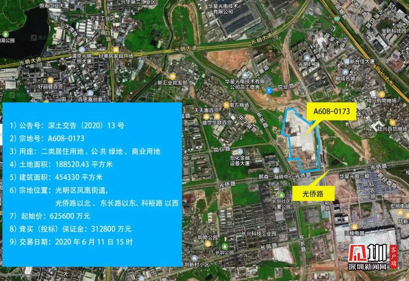 四宗地中,光明A608-0173宗地位于光明區(qū)鳳凰街道光僑路以北、東長路以東、科裕路以西,土地用途為二類居住用地、公共綠地、商業(yè)用地,土地面積為18.85萬平方米,建筑面積為45.43萬平方米。該地建設住宅類型為公共租賃住房、只租不售的人才住房和普通商品房,初始配建公共租賃住房和只租不售的人才住房各5萬平方米。項目建成后,普通商品住房最高銷售均價為4.75萬元/平方米(不含室內(nèi)裝修)。