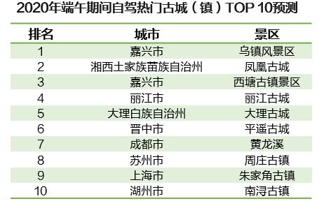 根據(jù)高德地圖交通大數(shù)據(jù)預(yù)測,端午期間全國熱門自駕古城(鎮(zhèn))TOP10一半分布在長三角區(qū)域,預(yù)計嘉興-烏鎮(zhèn)風(fēng)景名勝區(qū)自駕熱度最高,其次是湘西-鳳凰古城以及嘉興-西塘古鎮(zhèn)景區(qū)。