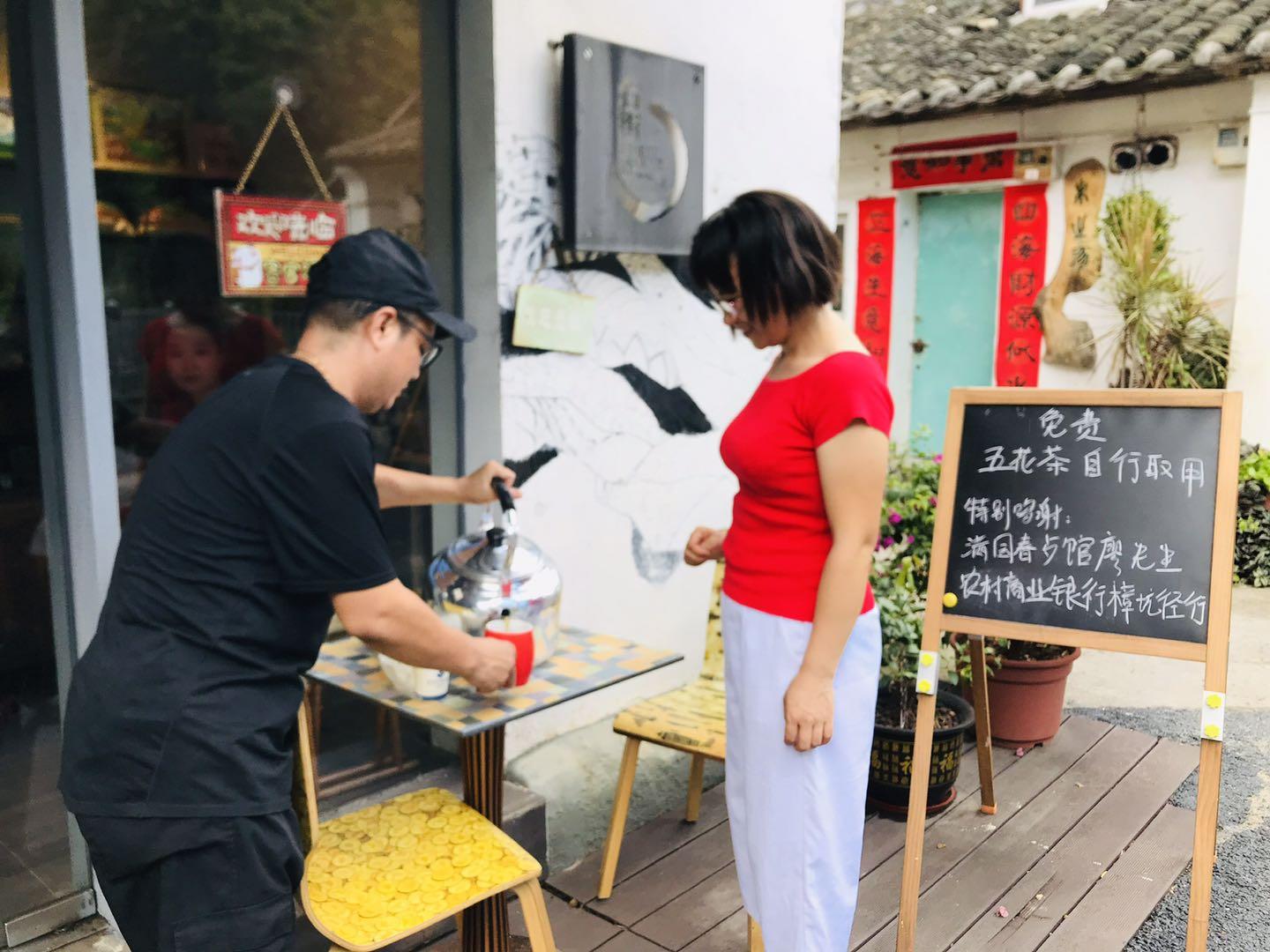 “夏古草、金銀花、菊花……”小林哥精心配制的“愛心涼茶”受到許多村民、駐村藝術(shù)家以及很多外來游客的歡迎。而為市民提供免費(fèi)“愛心涼茶”的事跡,感動(dòng)許多人的同時(shí),更影響了周圍一批熱心的企業(yè),他們紛紛加入涼茶的善意隊(duì)伍中參與愛心接力,為上圍“愛心涼茶”添磚加瓦,形成了“善的循環(huán)”。