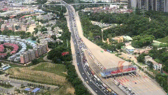 據了解,今天深圳市區(qū)內交通總體情況良好,主要擁堵都是集中在高速路上。中午一點二十分,記者再次搭乘直升機了解幾條主要高速路的路況。其中沈海高速荷坳路段,排隊的車龍長達十幾公里;南坪快速進入市區(qū)方向也出現(xiàn)嚴重排隊的情況。