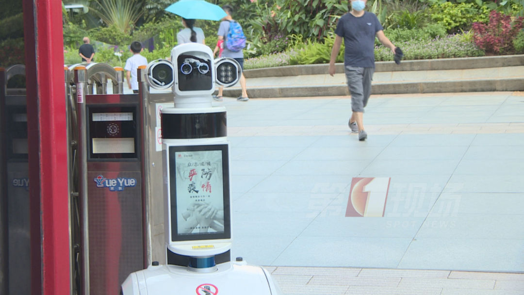 在蓮花山公園的南門口,安保人員戴著一頂智能頭盔,入園游客的體溫,可以實(shí)時(shí)顯示在眼前的屏幕上,一旦溫度達(dá)到37.3℃,就會(huì)發(fā)出警報(bào)。如果游客沒有戴口罩,門口的智能機(jī)器人也會(huì)提醒:“請您戴上口罩”。