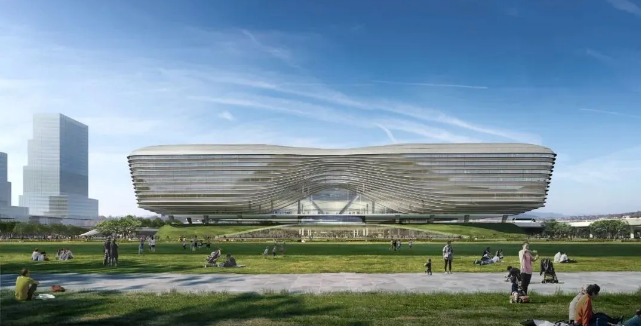 主創(chuàng)團(tuán)隊(duì)介紹,新皇崗口岸的設(shè)計(jì)以“國(guó)之重器”為概念?!皣?guó)之重器”整體形態(tài)對(duì)稱、穩(wěn)固,輔以新型石材主導(dǎo)的幕墻系統(tǒng),采用外立面虛實(shí)相間的材料運(yùn)用,充滿未來(lái)感;抬高的景觀基座抬升主體,氣勢(shì)莊重;建筑整體以充滿力量感的純凈體量,寄喻口岸為大灣區(qū)發(fā)展的基石重器。