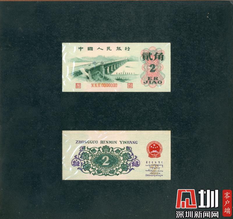 第三套人民幣2角票面正反面圖。