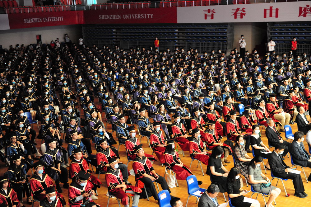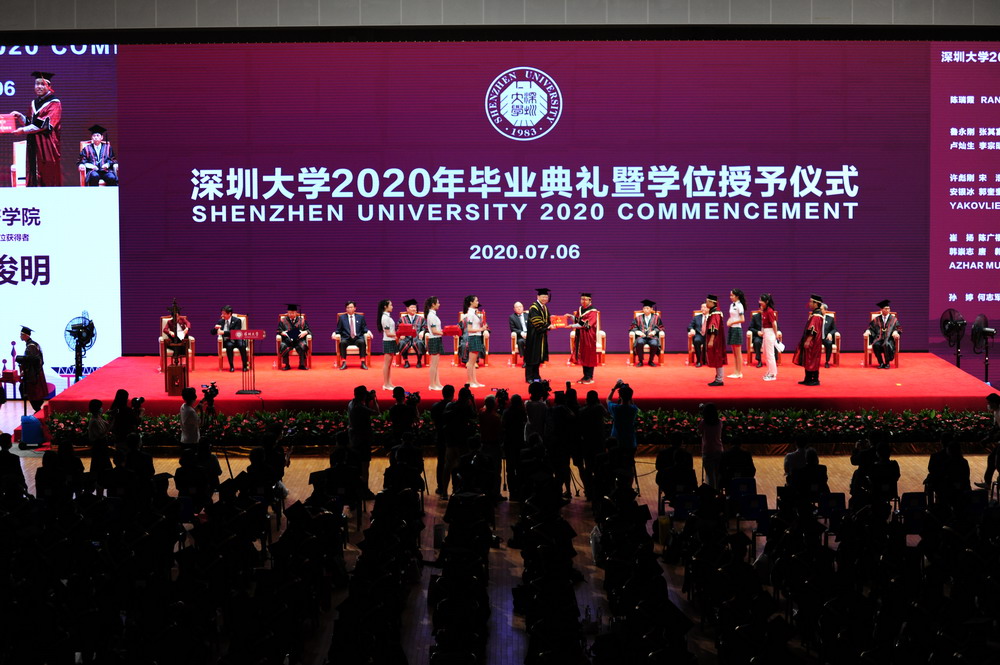 見圳客戶端·深圳新聞網(wǎng)2020年7月6日訊(見圳客戶端、深圳新聞網(wǎng)記者 金洪竹 梁榆其)又是一年鳳凰花開,又是一年畢業(yè)季。7月6日,深圳大學(xué)2020年畢業(yè)典禮暨學(xué)位授予儀式在深圳大學(xué)元平體育館舉行。為了讓畢業(yè)生的青春不留遺憾,今年學(xué)校的畢業(yè)典禮規(guī)格不降,采取“主會場+分會場”“線上+線下”的模式舉行。典禮全程通過新華網(wǎng)、央視新聞客戶端、人民視頻、抖音等多家媒體平臺同步直播,讓身處各地的畢業(yè)生、老師、校友、家長,可以跨越山海、相聚“云端”、同步觀禮。