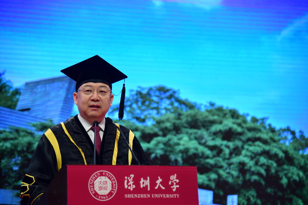 深圳大學(xué)校長李清泉為博士學(xué)位獲得者頒授學(xué)位
