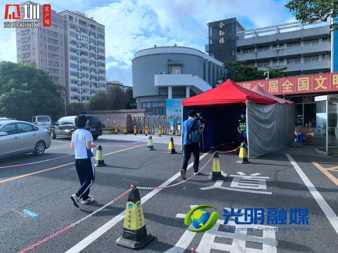 早上七點(diǎn)十五分,記者來到光明區(qū)高級(jí)中學(xué)考點(diǎn),學(xué)生已經(jīng)開始有序走入考場(chǎng)。