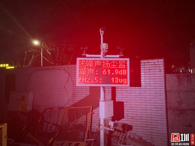 位于梅林中學(xué)附近的華強(qiáng)云產(chǎn)業(yè)園和鄰近的中糧金帝、恒利科創(chuàng)共同組成了一個(gè)工地集群,由于它們都是靠近住宅區(qū)屬于污染源中的二類(lèi)區(qū),在噪聲分貝上有明確規(guī)定,白天不超過(guò)70分貝,夜間不超過(guò)55分貝。記者在現(xiàn)場(chǎng)看到,工地門(mén)口樹(shù)立著在線(xiàn)噪聲揚(yáng)塵監(jiān)測(cè)系統(tǒng),對(duì)工地的噪聲污染和空氣污染進(jìn)行實(shí)時(shí)數(shù)據(jù)監(jiān)控。