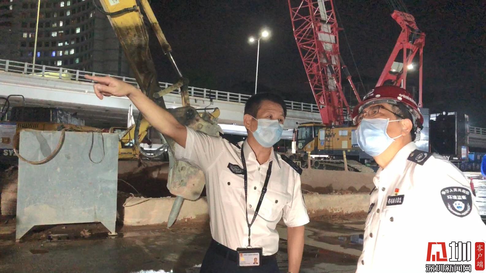 深圳市生態(tài)環(huán)境綜合執(zhí)法支隊(duì)支隊(duì)長(zhǎng)許化一行聯(lián)合深圳市生態(tài)環(huán)境局福田管理局突擊檢查了黃木崗綜合交通樞紐一工區(qū)和華強(qiáng)云產(chǎn)業(yè)園兩處施工工地,均未發(fā)現(xiàn)違規(guī)超時(shí)施工行為。