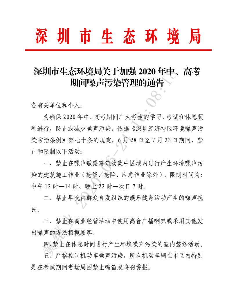 據(jù)了解,6月19日深圳市生態(tài)環(huán)境局發(fā)布了《深圳市生態(tài)環(huán)境局關(guān)于加強(qiáng)2020年中、高考期間噪聲污染管理的通告》,中午12點(diǎn)至下午14點(diǎn)、晚上10點(diǎn)至第二天早上7點(diǎn)是禁止施工時(shí)段,如果發(fā)現(xiàn)有施工行為可以直接立案查處并查封,而黃木崗綜合交通樞紐一工區(qū)就屬于此類(lèi)情況。