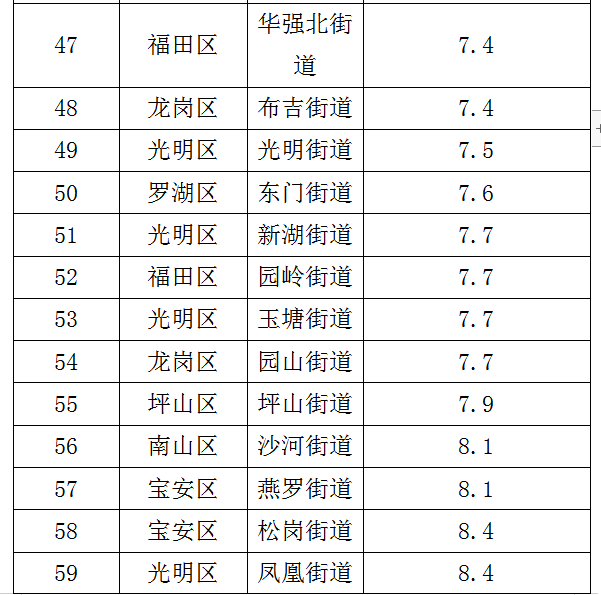 為提高大氣環(huán)境精細(xì)化管理水平,充分調(diào)動各區(qū)各街道大氣污染治理積極性,深圳市于2018年5月底在全國率先建成了“一街一站”網(wǎng)格化國標(biāo)空氣監(jiān)測體系。深圳市生態(tài)環(huán)境局從2018年11月起每月初將定期通報(bào)上月74街道PM2.5濃度排名情況。