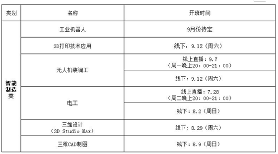 據(jù)悉,智能制造類、信息技術(shù)類課程7月9日開始報(bào)名,企業(yè)管理類、社會服務(wù)類、創(chuàng)業(yè)項(xiàng)目類7月10日開始報(bào)名,報(bào)名時(shí)間截止到7月底。