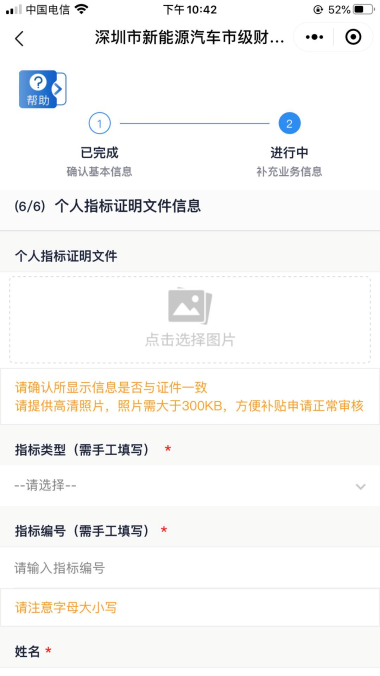 步驟8:購車類申報信息——填報個人指標證明信息