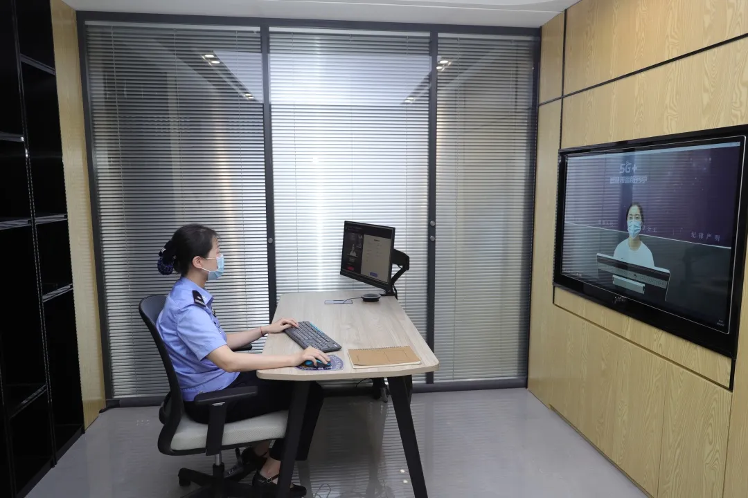 ▲民警通過5G自助報警終端向報警人了解情況