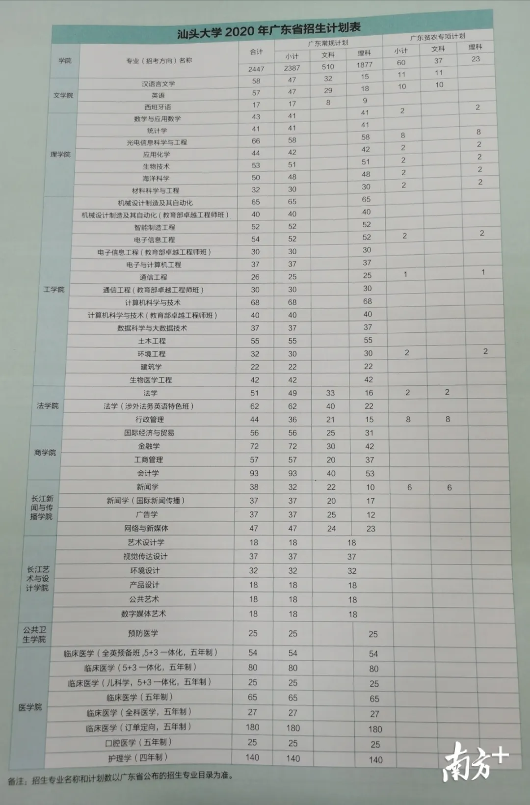 汕大本科生招生計(jì)劃數(shù)為3100人,新增預(yù)防醫(yī)學(xué)、藥學(xué)專業(yè),分別招生30人、20人,并增加新聞學(xué)專業(yè),新增國際新聞傳播方向,招生45人。