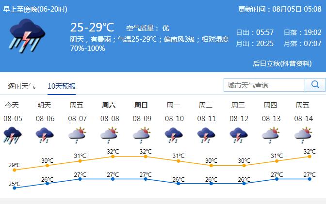 見圳客戶端·深圳新聞網(wǎng)2020年8月5日訊 今日我市陰天,有暴雨;氣溫25-29℃;偏南風(fēng)3級(jí);相對(duì)濕度70%-100%。深圳市氣象臺(tái)于2020年8月5日5時(shí)15分在全市發(fā)布雷電預(yù)警,今天上午海上將不斷有降雨云團(tuán)生成,受其影響我市有零散雷暴;未來6小時(shí)累計(jì)雨量將達(dá)暴雨,深圳市氣象臺(tái)于2020年8月5日5時(shí)40分在全市發(fā)布暴雨黃色預(yù)警,全市進(jìn)入暴雨戒備狀態(tài),需注意防范。市民停留在安全地方;按照防御預(yù)案停止戶外易燃易爆危險(xiǎn)作業(yè),并加強(qiáng)?;瘓鏊踩芾?。