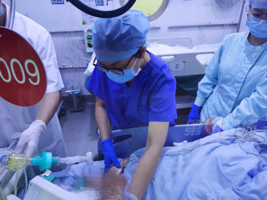 當(dāng)時(shí)人是神智不清的,有頻繁的抽搐,考慮這個(gè)頻繁抽搐,還是跟她心跳驟停之后,大腦缺血、缺氧狀態(tài)有關(guān)系。我們樓下?lián)尵仁?,很快就給她一個(gè)評(píng)估全身的狀態(tài),再一個(gè)就是第一時(shí)間,我們就給她緊急安排了高壓氧的治療。