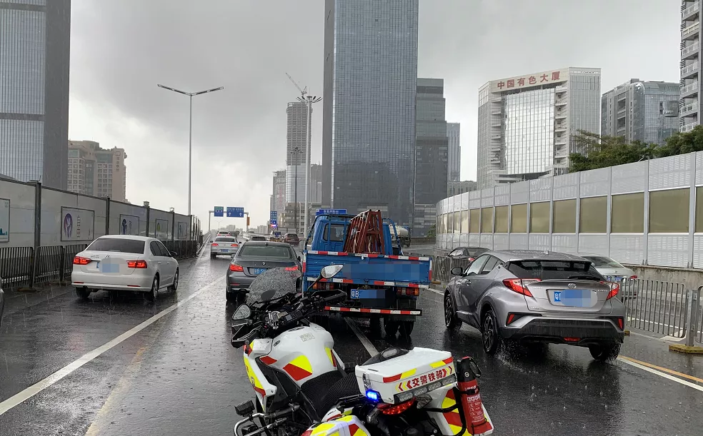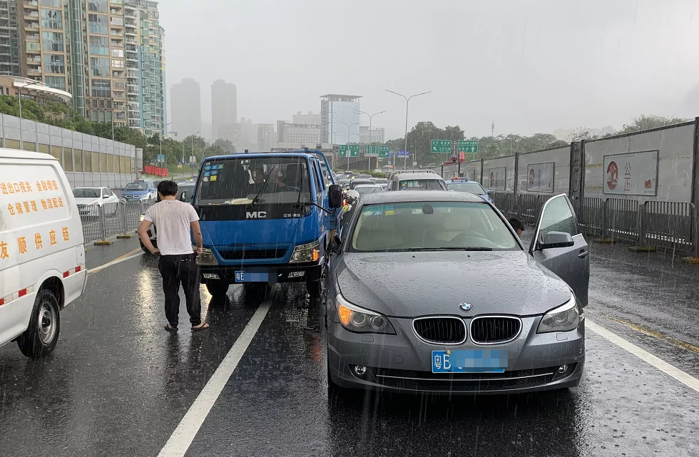 深圳交警立即引導兩車轉移到不影響交通路段,同時提醒過往車輛注意避讓。目前,涉事司機已報保險處理。