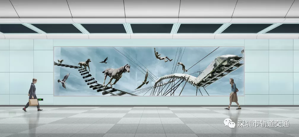 該站文化藝術(shù)墻以瓷板為材質(zhì),通過(guò)火車軌道、雄鷹、馬等元素結(jié)合,呈現(xiàn)出現(xiàn)代城市的多種元素,將城市、生態(tài)和科技的完美結(jié)合。