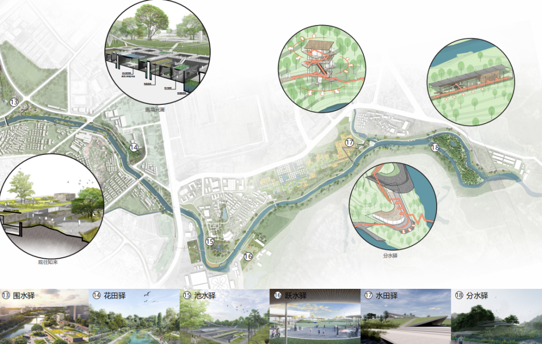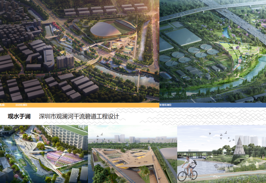 本次方案評審,觀瀾河、龍崗河干流和光明湖碧道分別有三家國內(nèi)外設計團隊,他們具有豐富的濱水公共空間規(guī)劃設計經(jīng)驗,前期做了大量的準備工作;參賽團隊共提交了九個概念方案,設計成果從不同角度呈現(xiàn)其對項目的深入理解,為最美濱水公共空間的打造提供了多元創(chuàng)新的設計解法。