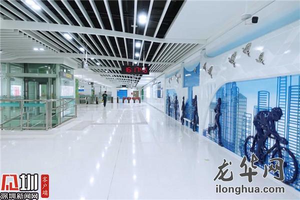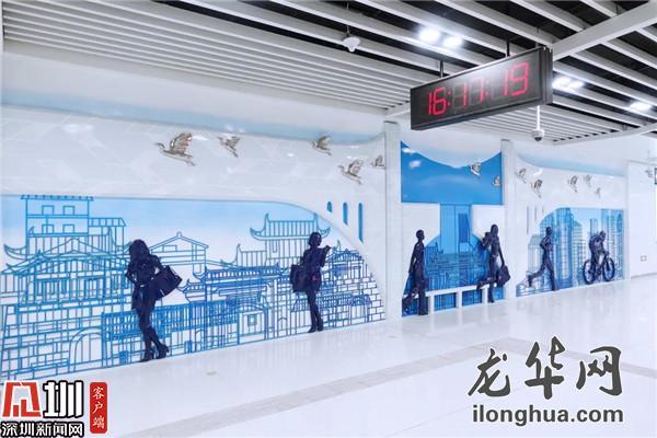 2015年,曾經(jīng)的深圳經(jīng)濟(jì)特區(qū)“梅林關(guān)檢查站”正式退出歷史舞臺(tái),由梅林關(guān)等組成的深圳特區(qū)管理線(xiàn),是特區(qū)建設(shè)的歷史見(jiàn)證,承載著城市的記憶。一進(jìn)站廳層,雕塑作品《梅林關(guān)記憶》便讓人留下深刻印象,該作品的畫(huà)面主背景為已拆除的“梅林關(guān)聯(lián)檢大樓”,透過(guò)兩側(cè)的半拱造型、線(xiàn)性結(jié)構(gòu)建筑使得深圳的厚重歷史與飛速發(fā)展清晰可見(jiàn)。