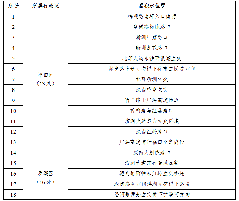 根據(jù)深圳市氣象局等權(quán)威部門發(fā)布的易積水路段匯總信息,深圳全市范圍暴雨天氣易積水路段如下,其中,東環(huán)一路、新洲路、文錦北路等路段周邊積水相對(duì)密集,請市民朋友小心留意,注意安全。