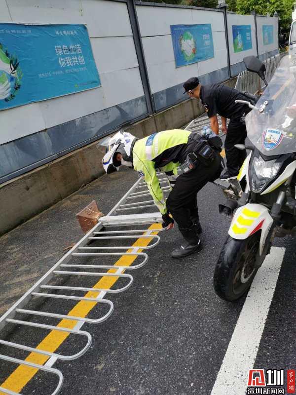 9月21日9時(shí)許,羅湖大隊(duì)黃貝中隊(duì)鐵騎隊(duì)員羅益華巡邏至仙湖路時(shí),發(fā)現(xiàn)路邊近5米長的護(hù)欄倒地,路過的車輛紛紛降低速度避讓,嚴(yán)重影響過往車輛和行人的正常通行,安全隱患極大,羅益華立即與群眾一同將護(hù)欄扶正、歸位,交通隱患得到及時(shí)排除,道路也恢復(fù)暢通。