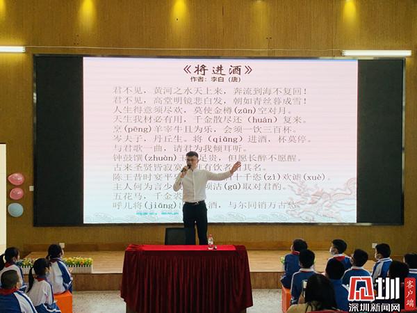 深圳新聞網(wǎng)訊(深圳新聞網(wǎng)記者 彭桂紅 通訊員 梁文雅)為進一步弘揚中華優(yōu)秀傳統(tǒng)文化,近日,深圳市錦田小學(xué)特邀青年文化學(xué)者、深圳市百姓學(xué)習(xí)之星、深圳市公益閱讀推廣人、深圳市首屆家園文化文學(xué)會會長晉玉東為廣大師生開展了一場別開生面的“中國古典詩詞朗誦藝術(shù)鑒賞——兼談如何朗誦好一首詩”公益文化講座。羅湖區(qū)錦田小學(xué)德弘校區(qū)副校長劉向陽、羅湖區(qū)錦田小學(xué)德弘校區(qū)主任張俊暉、羅湖區(qū)未來學(xué)校主任謝淑紅、德弘二年級家委代表以及語文科組老師,一同參加。活動由班主任梁文雅和學(xué)生劉沛東、張家琪共同主持,近200名學(xué)生參加了講座活動。整場講座師生熱情高漲,主講嘉賓深入淺出、娓娓道來,參與學(xué)生思維活躍、表現(xiàn)積極,帶動校園形成了學(xué)習(xí)詩詞文化的良好氛圍。