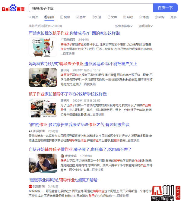 中國青少年研究中心家庭教育首席專家孫云曉介紹,全國婦聯(lián)的一項調查顯示,40%以上的家長覺得無力輔導孩子作業(yè)。家長們對此有多愁苦?百度搜索“輔導孩子作業(yè)”的資訊,彈出16.2萬篇文章,大部分是關于家長各種吐槽。《作業(yè)把孩子難哭了,輔導作業(yè)把媽媽氣哭了,網友:太真實了》、《“爸爸事業(yè)再風光,輔導作業(yè)也爆缸!”》、《自從開始輔導孩子做作業(yè),嗓子啞了,血壓高了,吃肉都不香了》……一篇篇文章的標題,都是關于各位家長輔導孩子時的滿肚子苦水。