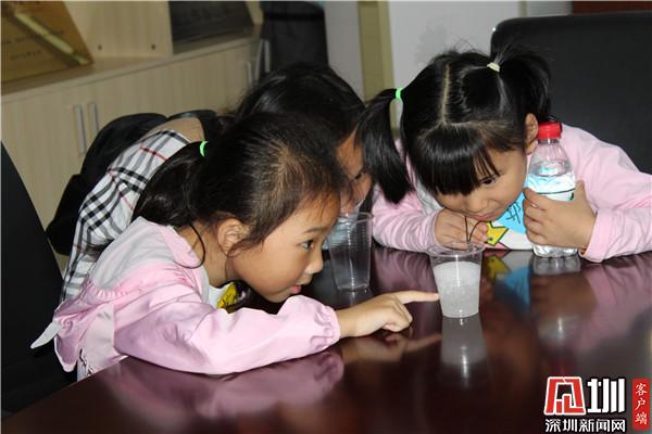 30位社區(qū)青少年年紀(jì)最小的6歲,最大的12歲,有的是跟家長(zhǎng)一起,有的是兄弟姐妹一起來,他們認(rèn)真聽課,積極參與實(shí)驗(yàn),眼看著普普通通的自來水,加入一種化工原料,就從液體變成了顆粒狀,霏霏小朋友張大了嘴巴驚呼:“好神奇啊!”在老師的講解下,他們知道了其中的原理,同時(shí)也學(xué)會(huì)了尋找身邊生活中的科學(xué)現(xiàn)象,用化學(xué)的視角理解身邊的問題。