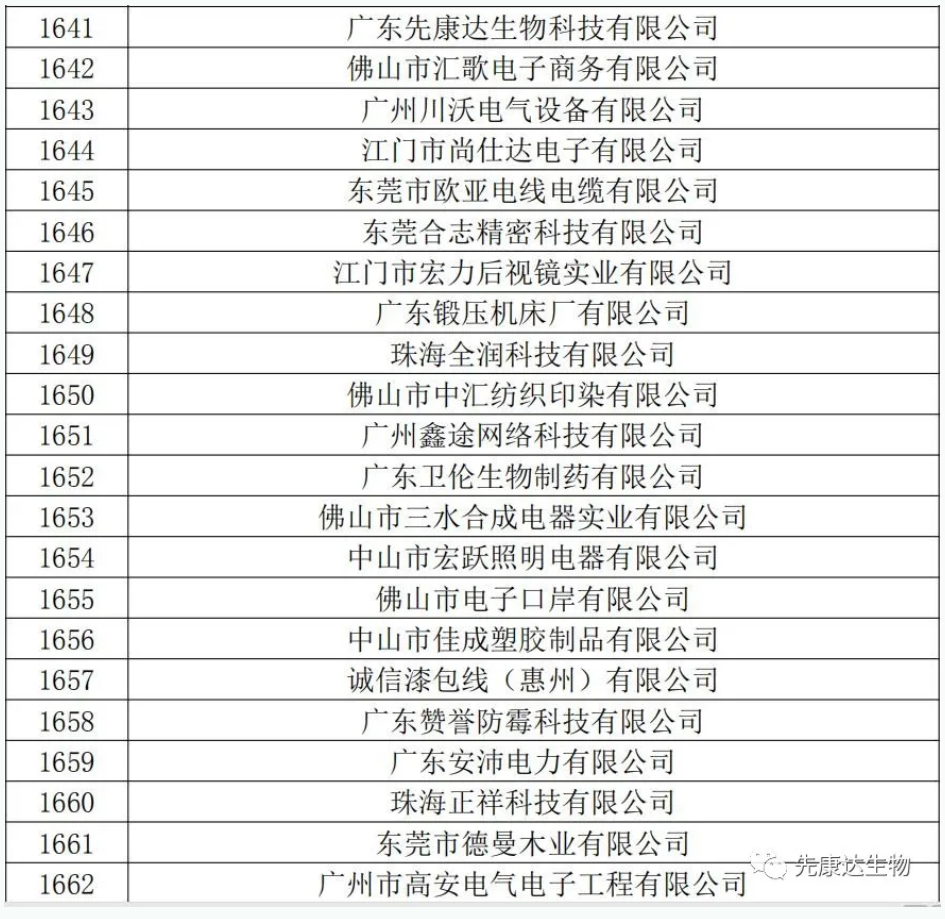 近日,廣東省科技廳公布廣東省2020年度第一批國(guó)家高新技術(shù)企業(yè)名單,廣東先康達(dá)生物科技有限公司赫然名列其中,這標(biāo)志著先康達(dá)生物邁上一個(gè)更大的臺(tái)階。