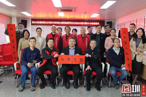 見圳客戶端?深圳新聞網(wǎng)1月29日訊(記者 劉晨 彭桂紅 通訊員 陳秋珊 紀(jì)楚苗)“感謝你們的看望,你們的慰問讓我們感覺很溫暖、很貼心。”1月28日下午,深圳市紀(jì)委監(jiān)委駐報業(yè)集團紀(jì)檢監(jiān)察組組長、報業(yè)集團黨組成員陳鵬,深新傳媒總裁、深圳新聞網(wǎng)總編輯藍(lán)岸,帶領(lǐng)報業(yè)集團紀(jì)檢監(jiān)察室黨支部、深圳新聞網(wǎng)黨總支部黨員代表,到羅湖區(qū)清水河街道梅園社區(qū)開展結(jié)對共建新春慰問活動。