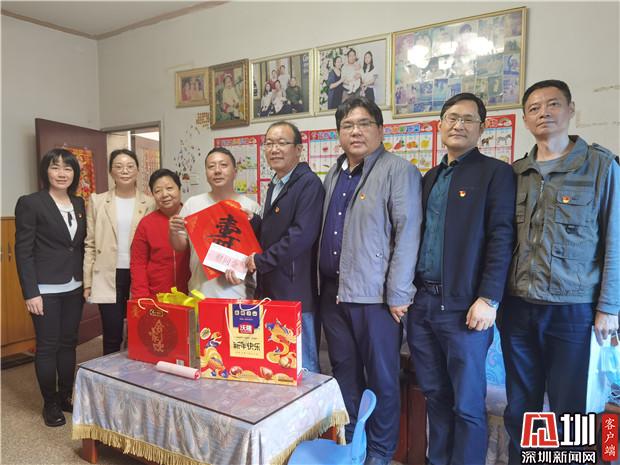 隨后,陳鵬、藍(lán)岸率領(lǐng)報業(yè)集團紀(jì)檢監(jiān)察室黨支部、深圳新聞網(wǎng)黨總支部黨員代表,在清水河街道黨工委副書記劉曉春、街道四級調(diào)研員陳小龍、梅園社區(qū)黨委書記曾建輝、副書記陳秋珊等人的陪同下,對梅園社區(qū)抗疫先鋒黨員、單親婦女、困難居民、殘疾人士進行分組探訪慰問并送上新春祝福。大家?guī)厦篮玫淖8?、喜慶的春聯(lián)、慰問金、臘腸等慰問品,分四組慰問走訪。
