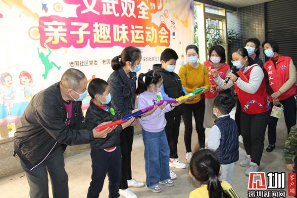 見圳客戶端·深圳新聞網(wǎng)2月1日訊(記者 劉嘉敏 通訊員 楊紀(jì)歐)今年過(guò)年不回家,要玩就在社區(qū)玩?!耙蛉攵础薄靶◎蝌秸覌寢尅薄傲璨ㄎ⒉健薄皩殞氈嘎贰边@些又好聽又好玩的游戲,是羅湖區(qū)桂園街道老圍社區(qū)黨群服務(wù)中心的社工為社區(qū)居民精心準(zhǔn)備的。1月30日上午,社區(qū)為鼓勵(lì)社區(qū)居民留深過(guò)年,專門開展了一場(chǎng)“文武雙全”親子趣味運(yùn)動(dòng)會(huì),吸引了眾多小朋友及其家長(zhǎng),12對(duì)親子來(lái)到現(xiàn)場(chǎng)。