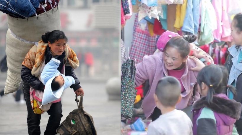 2010年1月30日,新華社記者周科在南昌火車站拍下了這樣一張照片:一位年輕的母親,背上巨大的行囊壓彎了她的身軀,左手里的背包眼看拖地,但攬?jiān)谟冶壑械膵牒⒄麧嵍鴾嘏Lь^前行的年輕母親面色紅潤,一雙眼睛堅(jiān)定有力。