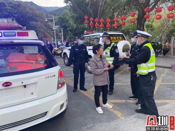 得知該情況后,現(xiàn)場隊員一方面穩(wěn)定老人家情緒,另一方面向其了解家人的基本情況。據(jù)老人描述,當天她與女兒和女婿兩人來到梧桐山游玩,結果不小心走散。而老人身上并沒有攜帶相關證件和通訊工具,也無法提供家人具體聯(lián)系方式和證件號碼。由于當時游人眾多,為確保老人安全,盡快幫助其找回走散的家人,現(xiàn)場隊員立即與交警隊指揮中心反映情況,并聯(lián)系東湖派出所協(xié)同開展調查。在執(zhí)勤交警與派出所警力的緊急幫助下,老人懸著的心也總算放下,并對隊員的熱心幫助表示衷心感謝。