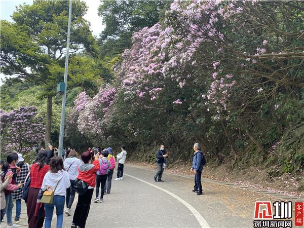 “大家平時(shí)有沒(méi)有來(lái)爬過(guò)梧桐山呢?你們知道梧桐山的最高峰是多少嗎?在梧桐山一共種植了多少毛棉杜鵑呢?”初入梧桐山,醫(yī)護(hù)人員們?cè)谟斡[車上看著一路盛放的杜鵑,導(dǎo)賞員在旁向大家介紹梧桐山風(fēng)景區(qū)的特色和花會(huì)盛況。據(jù)了解,3月18日至4月6日是深圳市梧桐山第六屆毛棉杜鵑花會(huì),為進(jìn)一步落實(shí)關(guān)愛(ài)抗疫醫(yī)護(hù)人員,羅湖面向抗疫一線醫(yī)護(hù)人員開(kāi)設(shè)專場(chǎng)導(dǎo)賞,由梧桐山優(yōu)秀導(dǎo)賞員提供自然導(dǎo)賞,領(lǐng)略景區(qū)風(fēng)光、認(rèn)識(shí)沿途植物等,讓守在抗疫一線的白衣戰(zhàn)士領(lǐng)略最美的春光。