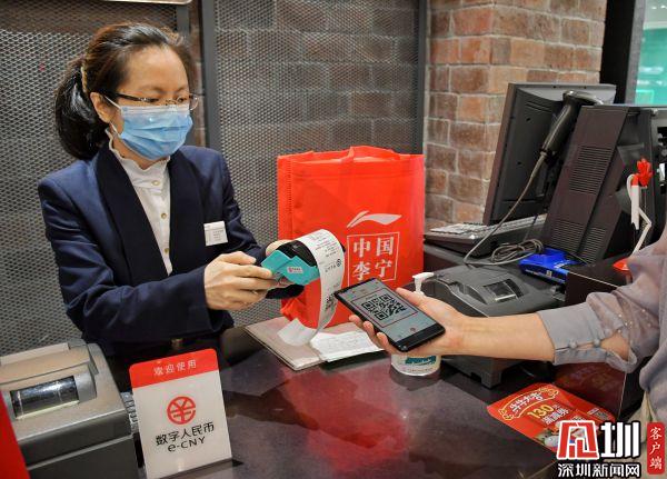 圖為梁女士在水貝珠寶集團(tuán)體驗數(shù)字人民幣消費實景。