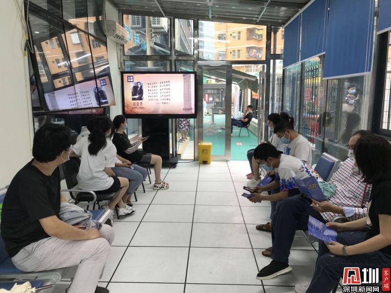 羅湖醫(yī)院集團(tuán)翠嶺社康中心疫苗接種留觀區(qū)域轄區(qū)居民觀看《為了新中國,我愿付出一切》。