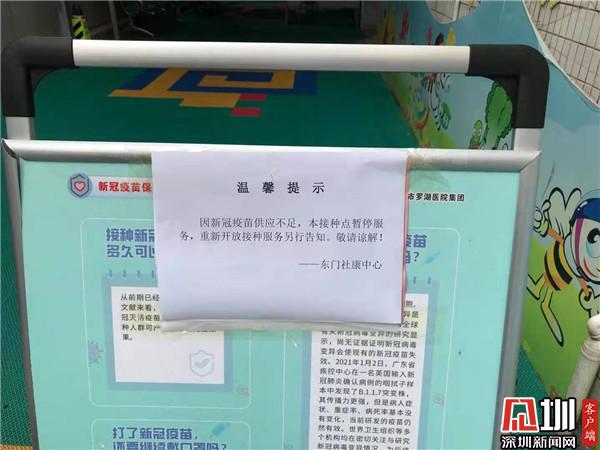 見圳客戶端·深圳新聞網4月7日訊(記者 彭桂紅 劉晨)“因新冠疫苗供應不足,本接種點暫停服務,重新開放接種服務另行告知。敬請諒解!——東門社康中心?!?月6日,記者在羅湖區(qū)東門社康中心看到,該社康貼出了疫苗暫時供應不足的告知。記者隨后走訪了其他幾個接種點,一些社康也紛紛貼出了類似溫馨提示。記者了解到,除羅湖外,其他區(qū)的接種點也出現(xiàn)了類似“缺苗”現(xiàn)象。對此,記者采訪了羅湖區(qū)衛(wèi)健局,相關負責人表示,這段時間轄區(qū)新冠病毒疫苗接種率大幅提升,目前缺苗只是暫時性的,正在加強調配,隨時可能到苗,請大家耐心等待,同時留意相關提示。