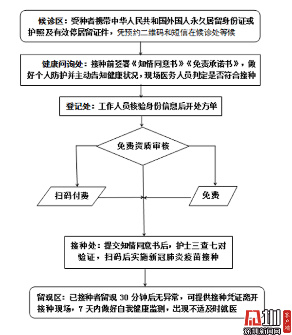 按照“知情同意、自愿自費、便利接種、風險自擔”原則,持有內(nèi)地公安部門制發(fā)的港澳居民居住證或內(nèi)地醫(yī)保參保憑證的港澳人士、在省內(nèi)各類學校工作和學習的港澳籍師生以及參加廣東省社會保障醫(yī)療保險的外籍人士,均可免費接種新冠疫苗;不符合以上免費接種條件的港澳同胞、外籍人士自愿參與疫苗接種,將按照100元/劑次收取費用。目前,深圳使用的是國產(chǎn)新冠病毒滅活疫苗,全程共需接種兩劑。
