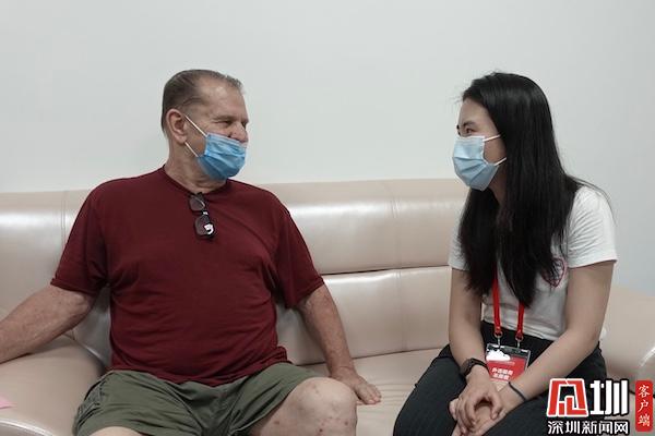 外籍人士Miller先生在妻子江女士的陪同下來到了羅湖醫(yī)院接種新冠疫苗。江女士說,Miller很喜歡中國,也熱衷于中國美食,她和丈夫每年冬天都會從美國來到深圳。今年6月份,江女士計劃和Miller乘坐飛機回到美國,由于返回美國途中需要中轉多次航班,Miller認為,接種新冠疫苗能夠讓自己的健康多一份保障,所以預約了新冠疫苗接種。對于這次的接種體驗,Miller贊不絕口:“我感覺非常棒!”